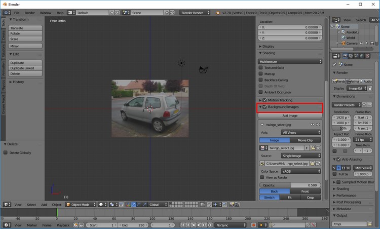 image dans la vue 3D de Blender afin de l'utiliser comme modèle