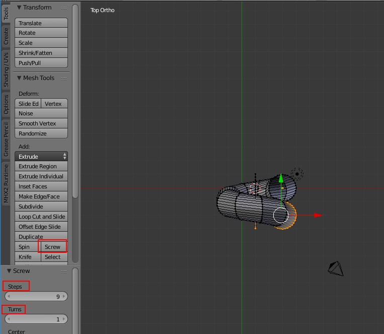 - Cliquer sur le bouton Screw du panneau de gauche (Tool